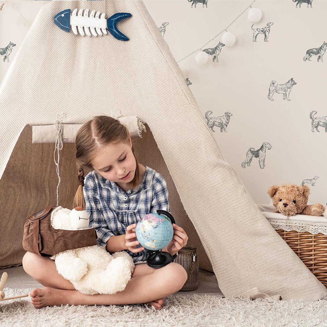Tapeta winylowa na podkładzie flizelinowym z kolekcji Pencil drawn w kolorze beżowym. Delikatne szkice różnych ras psów ożywią ściany pokoju najmłodszych, tworząc przytulną i przyjazną atmosferę.