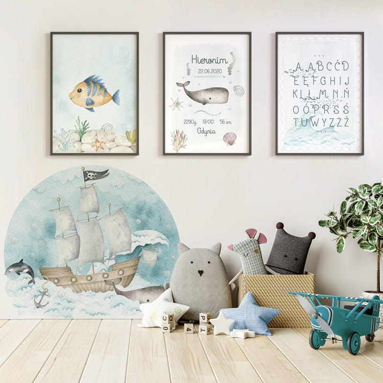 Zestaw składa się z trzech plakatów z motywem morskim: