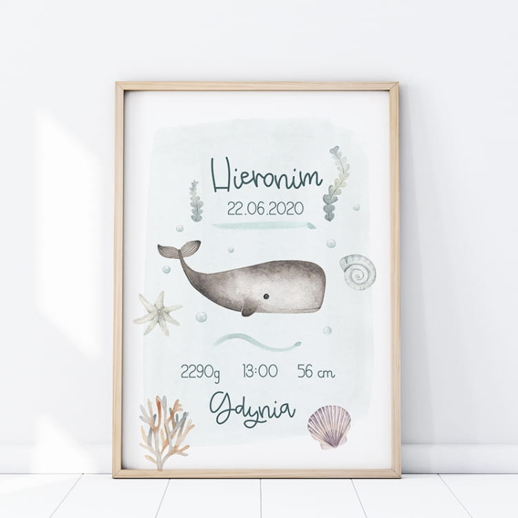 - plakat 2 - PLAKAT METRYCZKA WIELORYB P389 (w komentarzu do zamówienia wpisz: imię, datę, godzinę, miejscowość, wzrost i wagę dziecka)