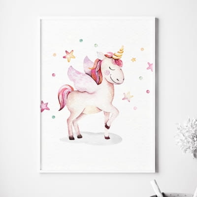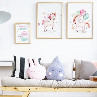 Zestaw plakatów dla dziewczynki z motywem jednorożca będzie doskonałym dodatkiem do pokoju malucha. Nada wnętrzu wyjątkowego charakteru.