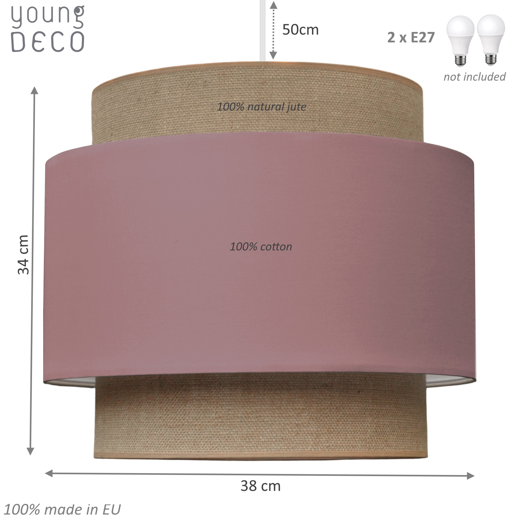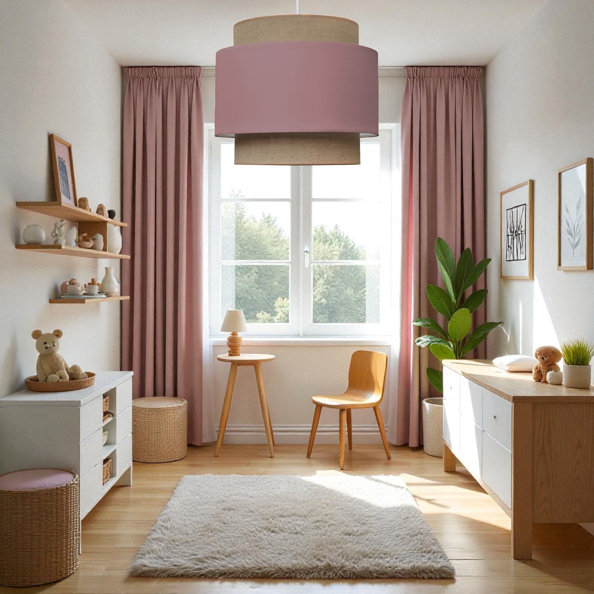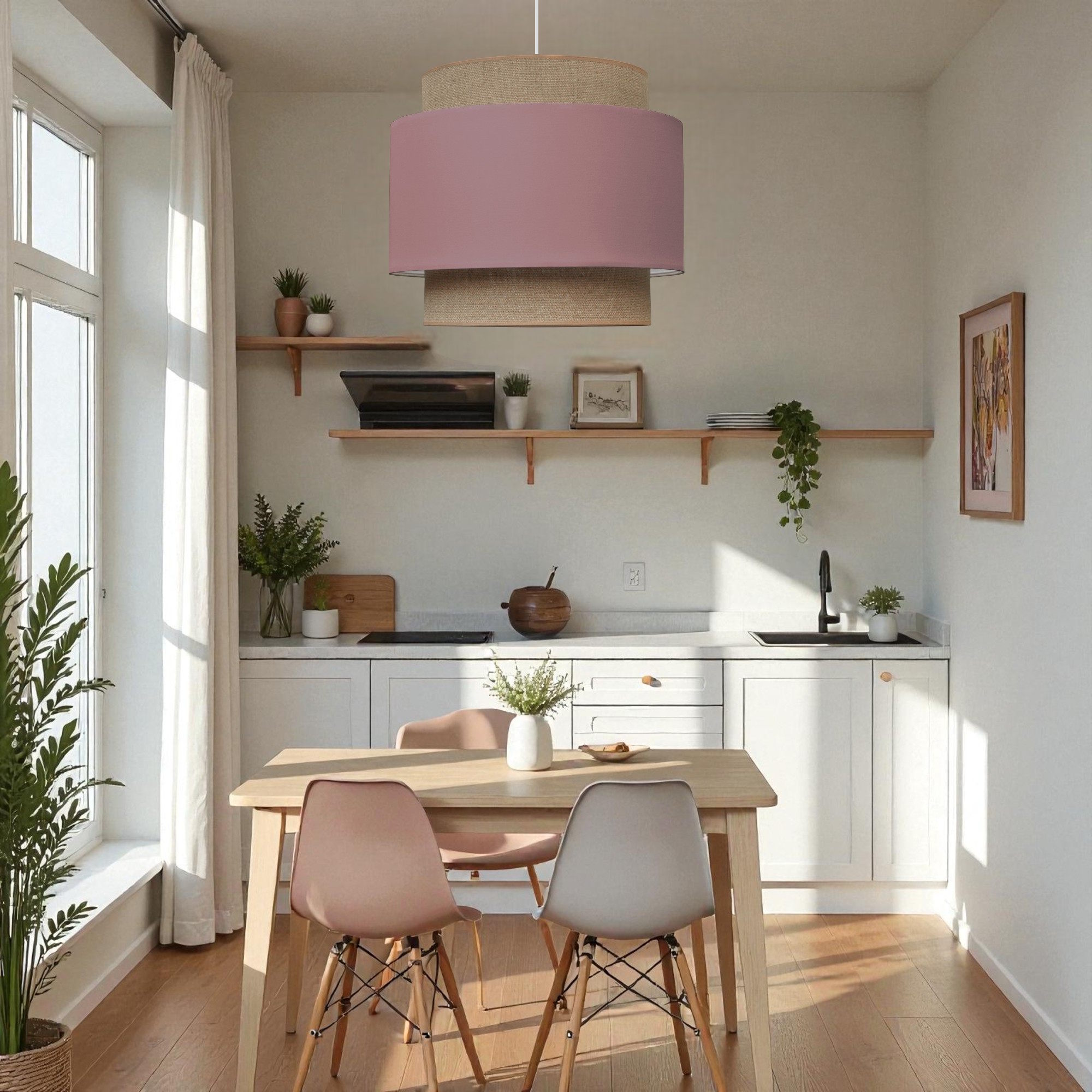 - abażur: delikatny brudny róż/juta