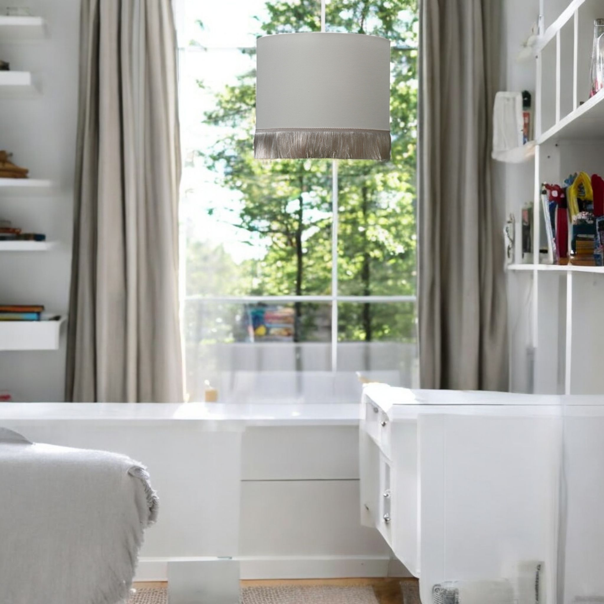 Beżowa lampa sufitowa z frędzlami – subtelne światło do pokoju dziewczynki