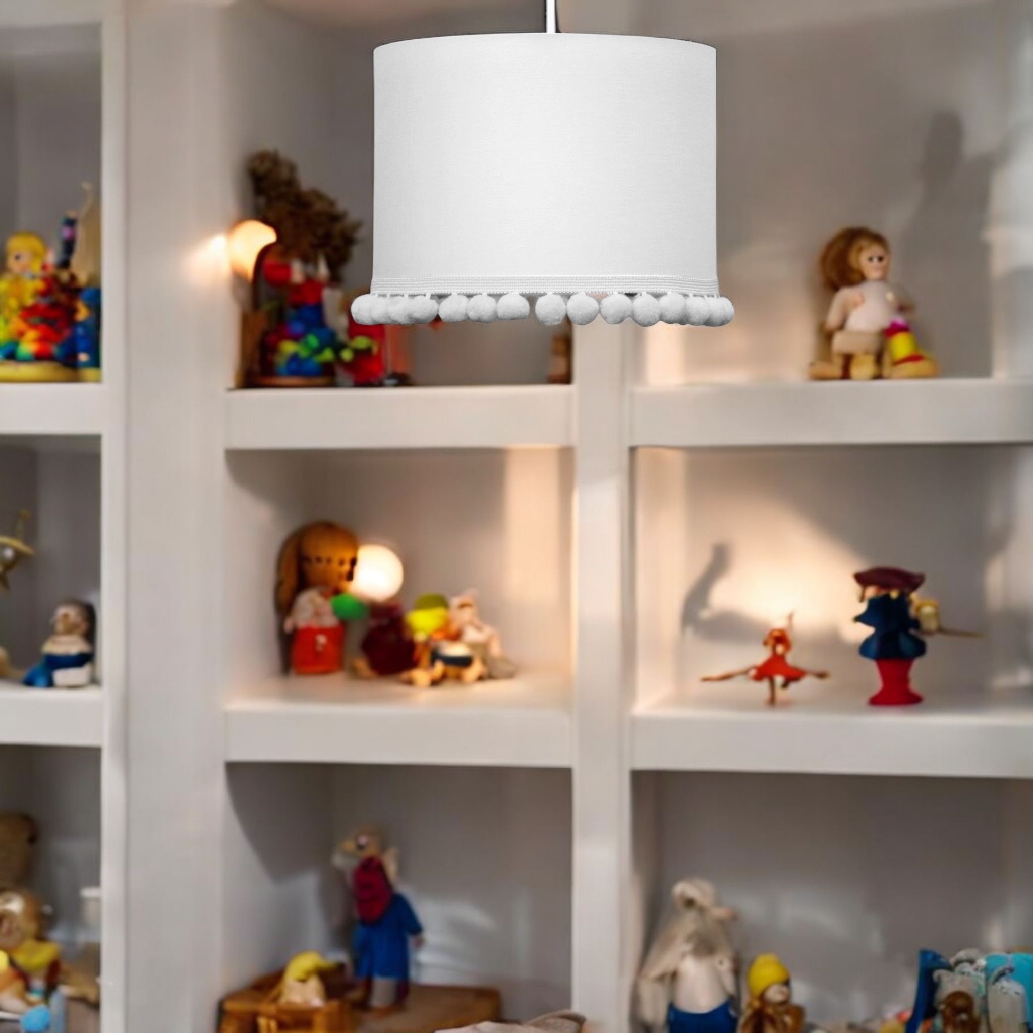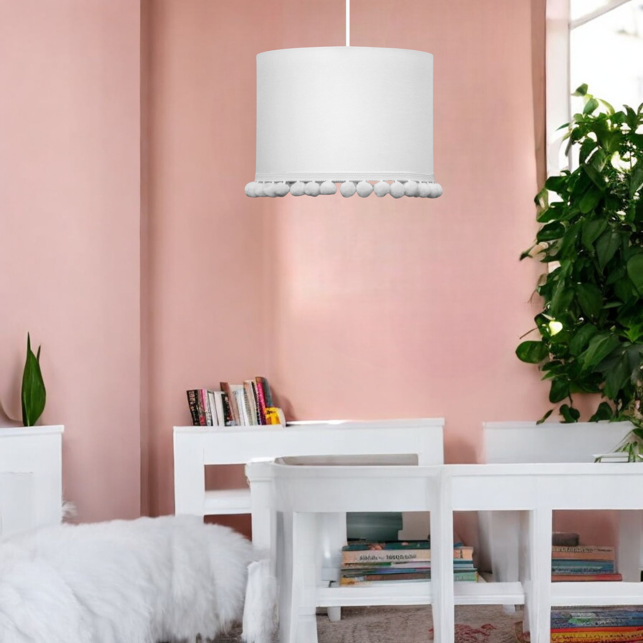 Lampa z pomponami to piękny wybór do pokoju niemowlaka, przedszkolaka, a także starszej dziewczynki. Łączy funkcjonalność z urokiem – będzie ozdobą każdego dziecięcego wnętrza.