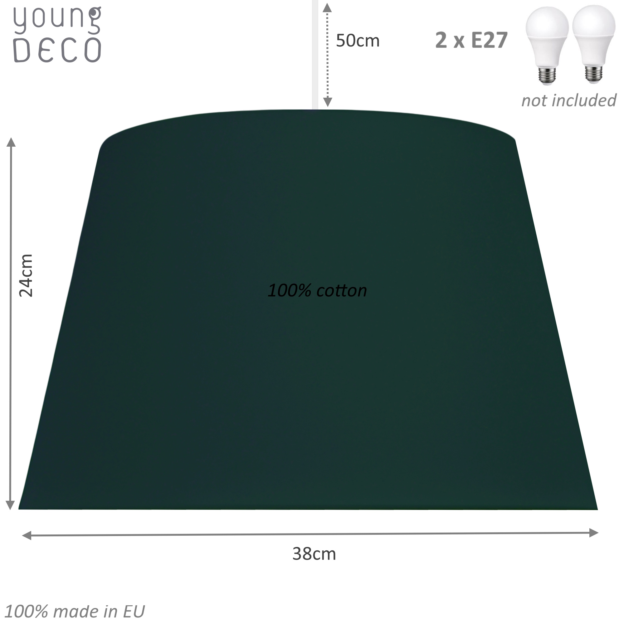 Lampa sufitowa w kształcie delikatnego, stożkowego abażuru w kolorze ciemnej zieleni to stylowy i praktyczny wybór, który sprawdzi się przez wiele lat, niezależnie od wieku i potrzeb dziecka.