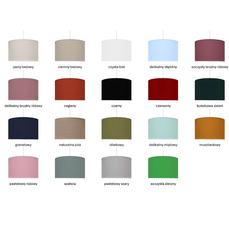- dopasowanie do własnego wnętrza dzięki możliwości wyboru wielu kolorów abażurów