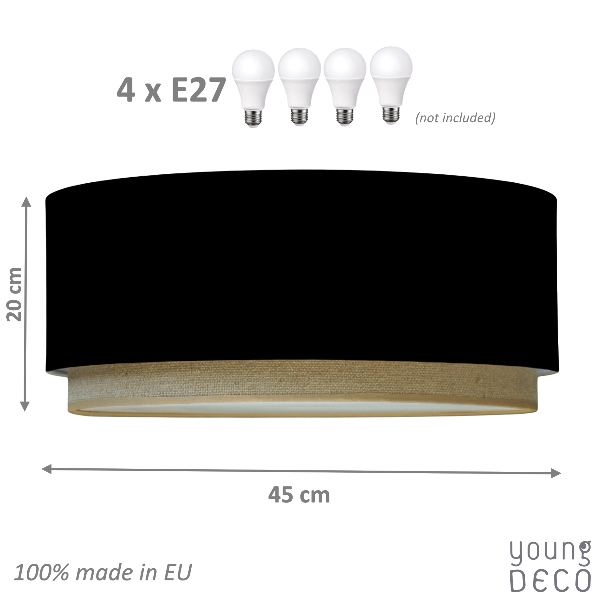 Plafony YoungDeco posiadają miejsce na wkręcenie aż 4 żarówek, dzięki czemu dają bardzo dużo światła w pokoju i są w stanie oświetlić nawet bardzo duże pomieszczenie. Plafon przychodzi w wersji jednoobowodowej z prostą instrukcją w jaki sposób można go przerobić na dwuobwodowy. Przy plafonie dwuobwodowym, czyli na podwójny włącznik, można zapalać w plafonie 2 lub 4 żarówki.