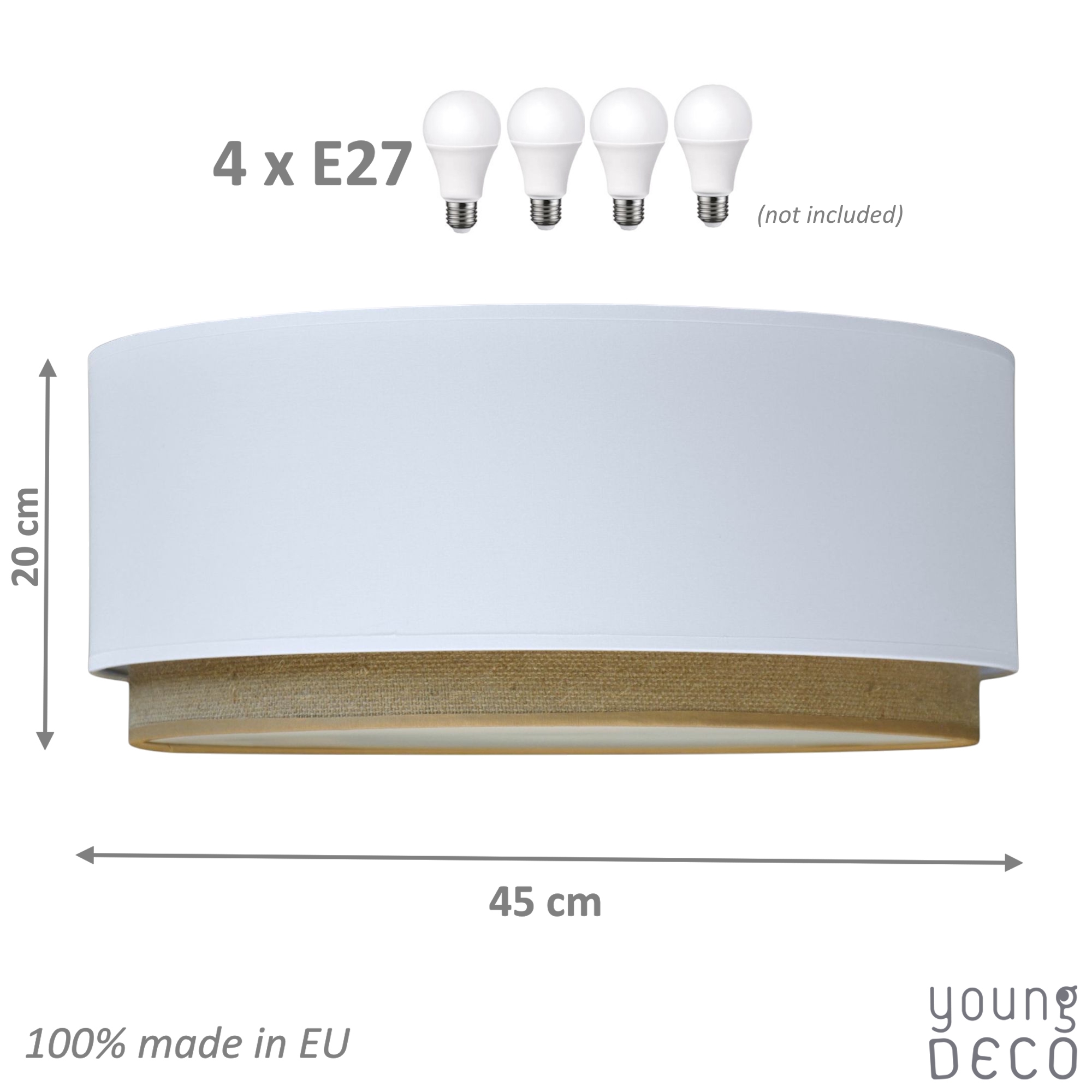 Plafony YoungDeco posiadają miejsce na wkręcenie aż 4 żarówek, dzięki czemu dają bardzo dużo światła w pokoju i są w stanie oświetlić nawet bardzo duże pomieszczenie. Plafon przychodzi w wersji jednoobowodowej z prostą instrukcją w jaki sposób można go przerobić na dwuobwodowy. Przy plafonie dwuobwodowym, czyli na podwójny włącznik, można zapalać w plafonie 2 lub 4 żarówki.