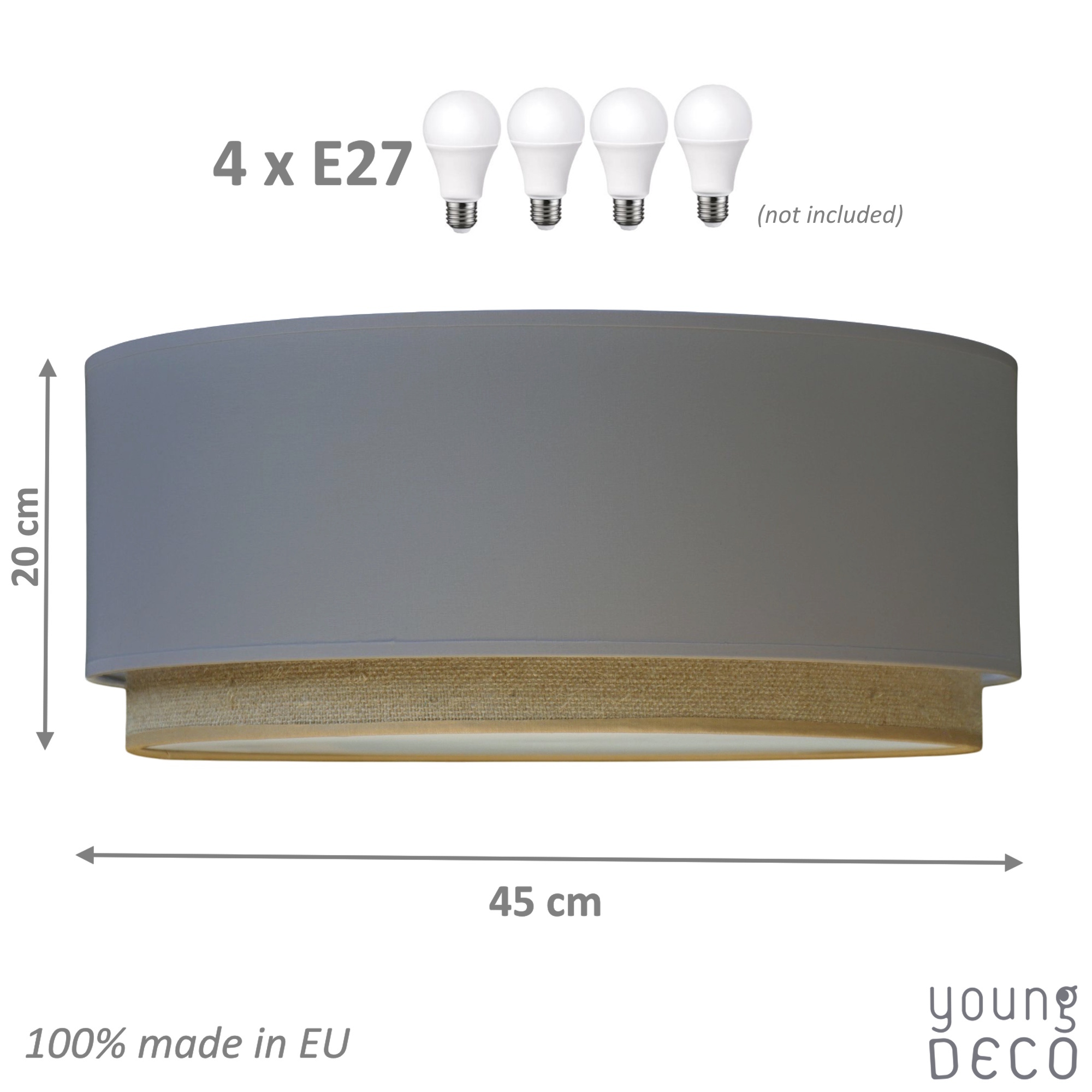 Plafony YoungDeco posiadają miejsce na wkręcenie aż 4 żarówek, dzięki czemu dają bardzo dużo światła w pokoju i są w stanie oświetlić nawet bardzo duże pomieszczenie. Plafon przychodzi w wersji jednoobowodowej z prostą instrukcją w jaki sposób można go przerobić na dwuobwodowy. Przy plafonie dwuobwodowym, czyli na podwójny włącznik, można zapalać w plafonie 2 lub 4 żarówki.