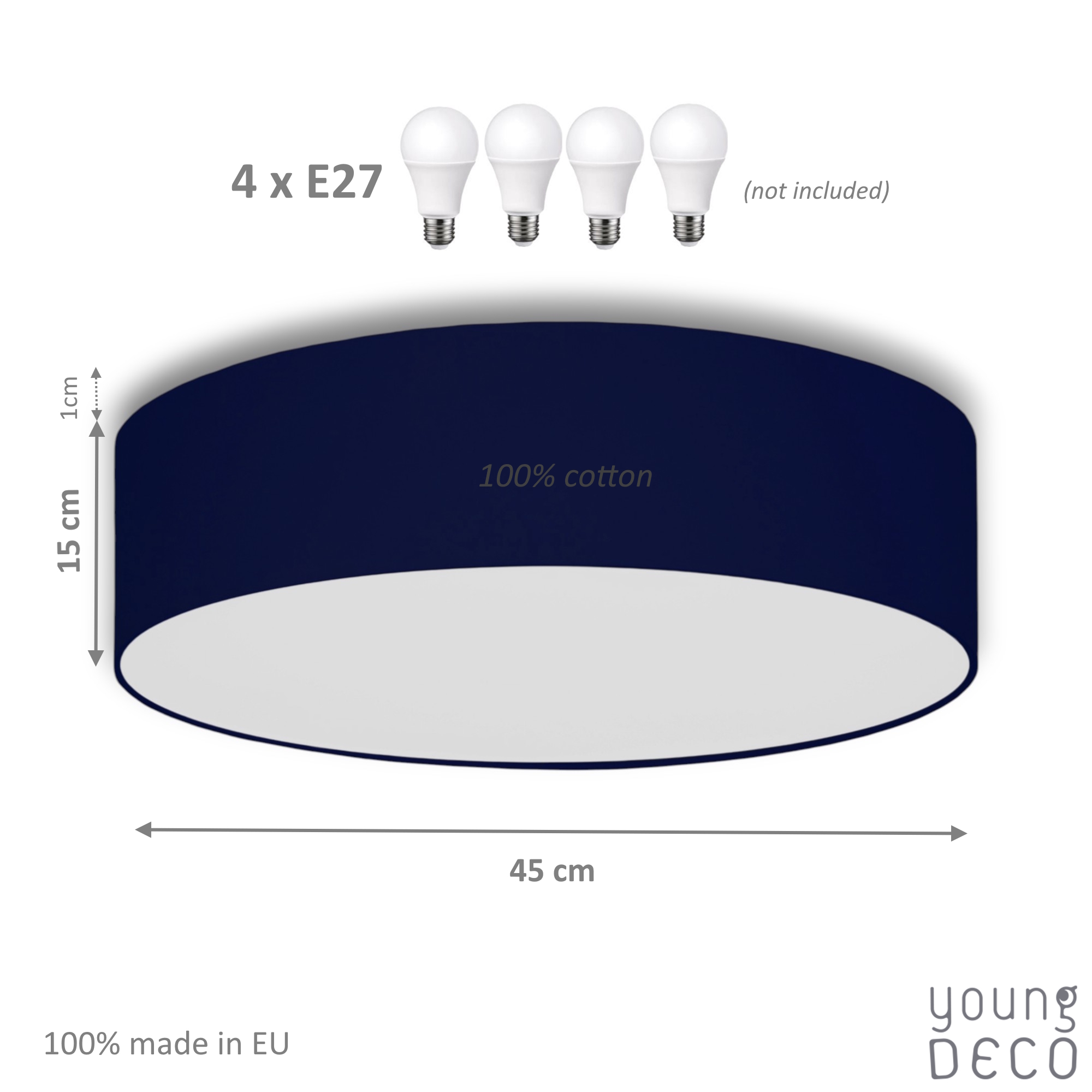 Plafony YoungDeco posiadają miejsce na wkręcenie aż 4 żarówek, dzięki czemu dają bardzo dużo światła w pokoju i są w stanie oświetlić nawet bardzo duże pomieszczenie. Plafon przychodzi w wersji jednoobowodowej z prostą instrukcją w jaki sposób można go przerobić na dwuobwodowy. Przy plafonie dwuobwodowym, czyli na podwójny włącznik, można zapalać w plafonie 2 lub 4 żarówki.