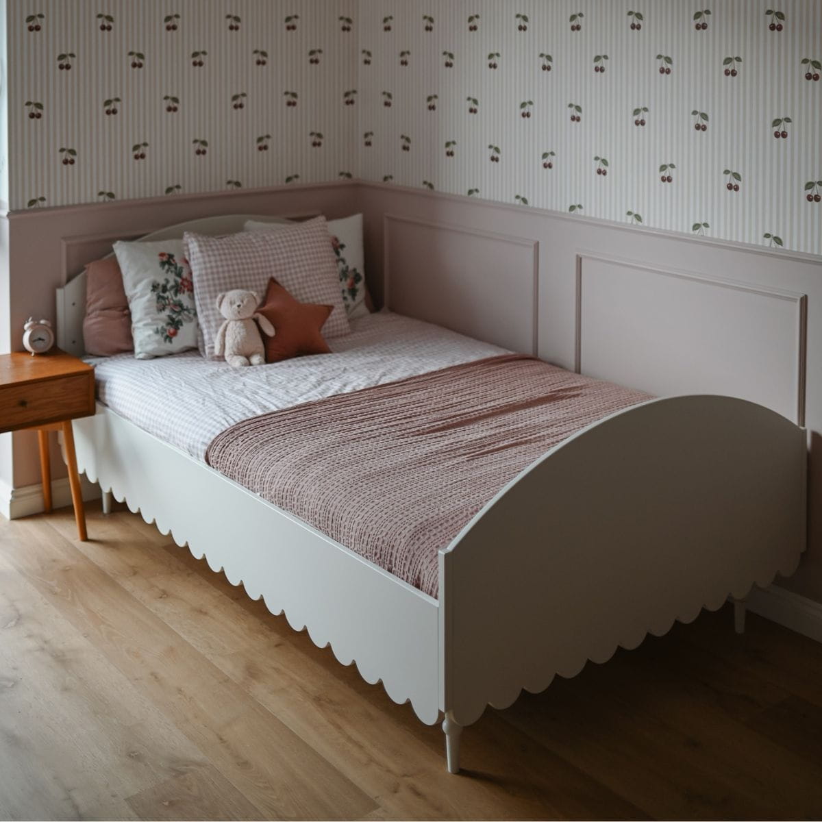 Funkcjonalne i stylowe łóżko o wymiarach 200x120 cm zostało zaprojektowane z myślą o potrzebach dorastającej dziewczynki. Jego uniwersalna forma i elegancki biały kolor doskonale odnajdą się w nowoczesnym pokoju dziecka, a subtelne detale w stylu retro dodają mu uroku i wyjątkowego charakteru.