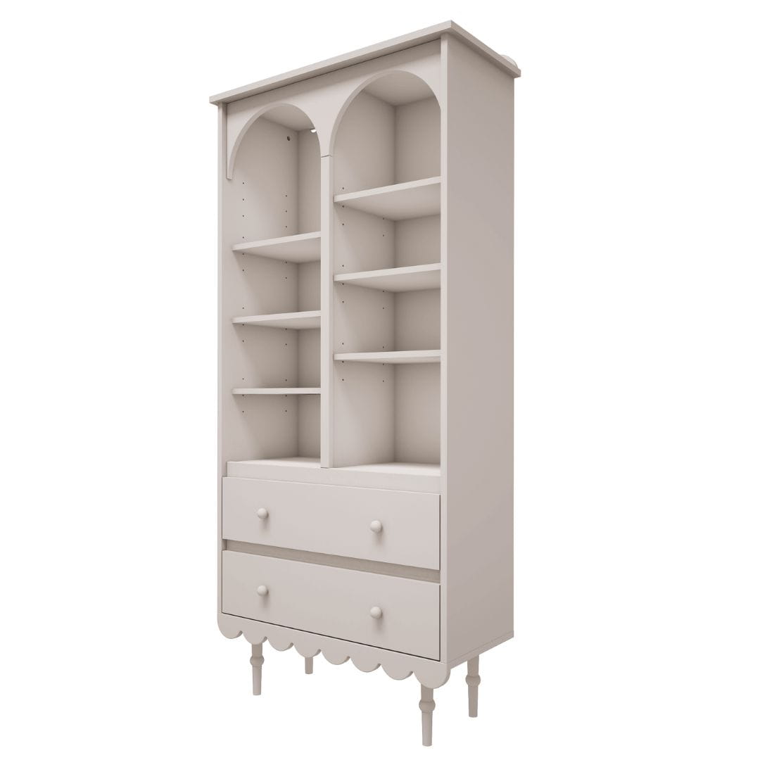 Wysoki, smukły regał z kolekcji Babushka to praktyczne i estetyczne rozwiązanie do przechowywania książek, zeszytów, zabawek, gier planszowych czy dekoracji. Kilka otwartych półek pozwala na uporządkowane eksponowanie przedmiotów, a dwie dolne szuflady z samodomykiem umożliwiają dyskretne przechowywanie drobiazgów.