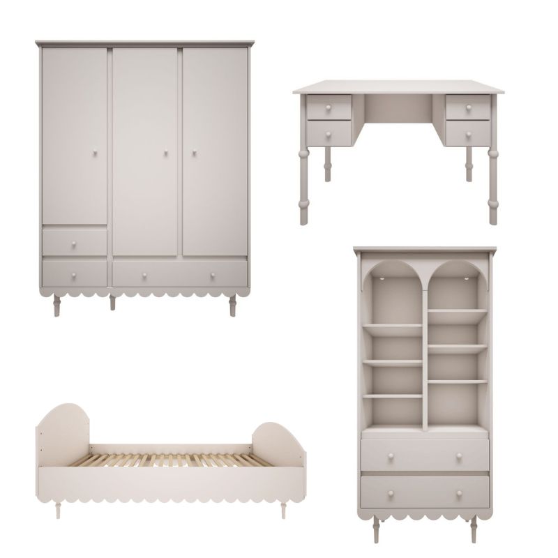 Kolekcja Babushka łączy w sobie urok stylu retro z nowoczesnymi rozwiązaniami i bezpieczeństwem użytkowania. Biały kolor mebli wprowadza do wnętrza lekkość, świeżość i ponadczasową elegancję – pasuje zarówno do pokoju młodszej dziewczynki, jak i nastolatki.