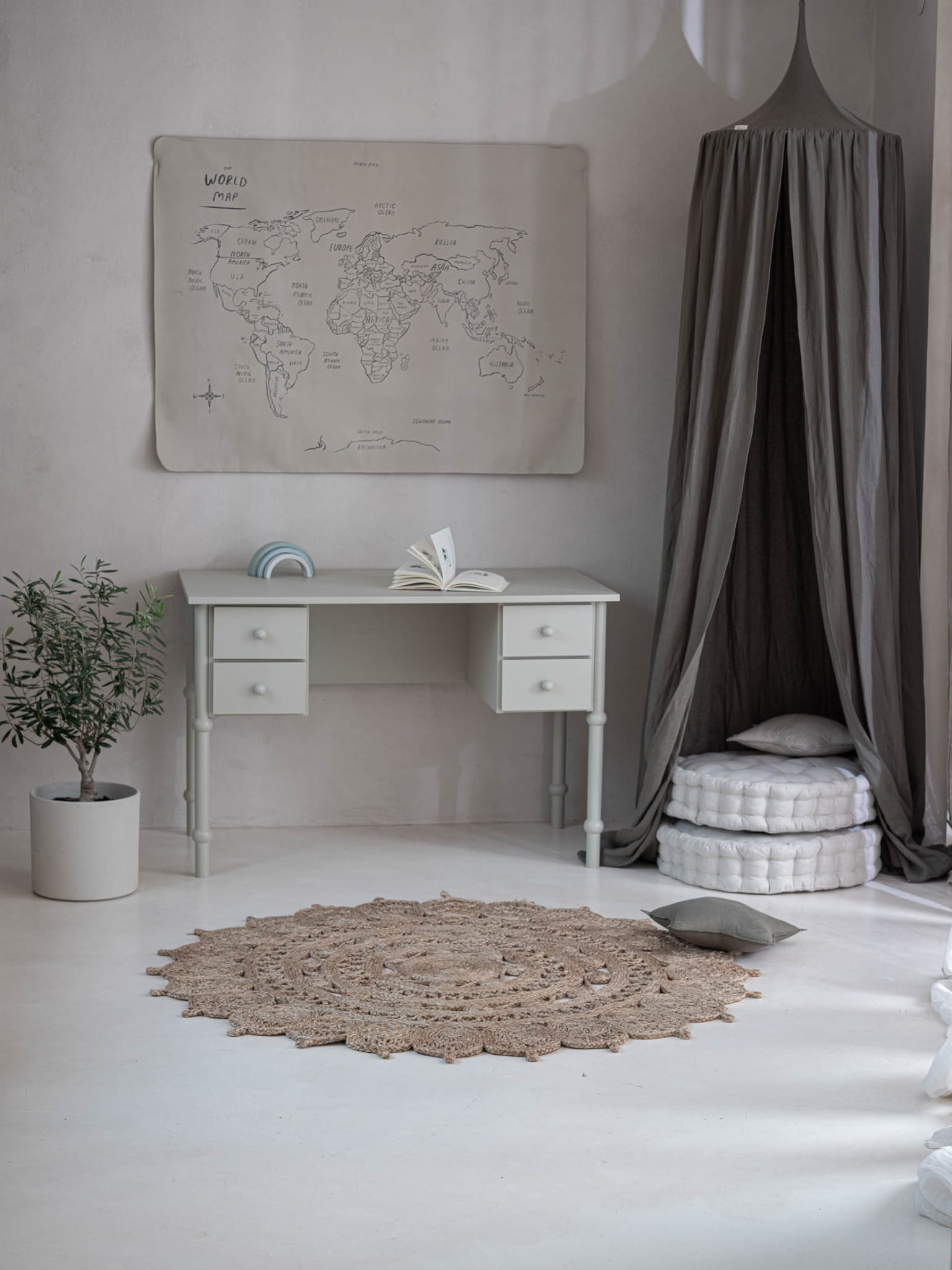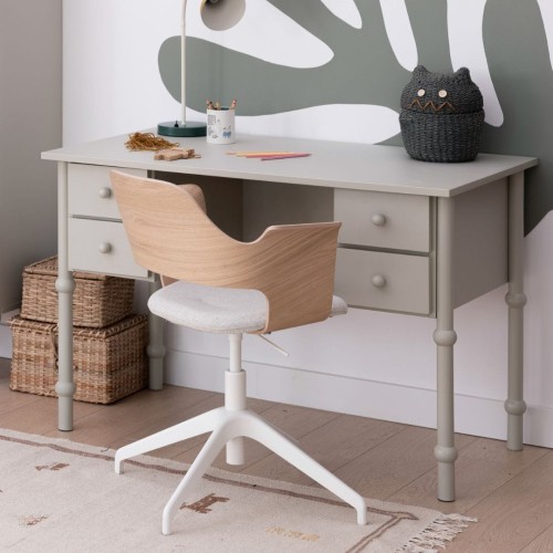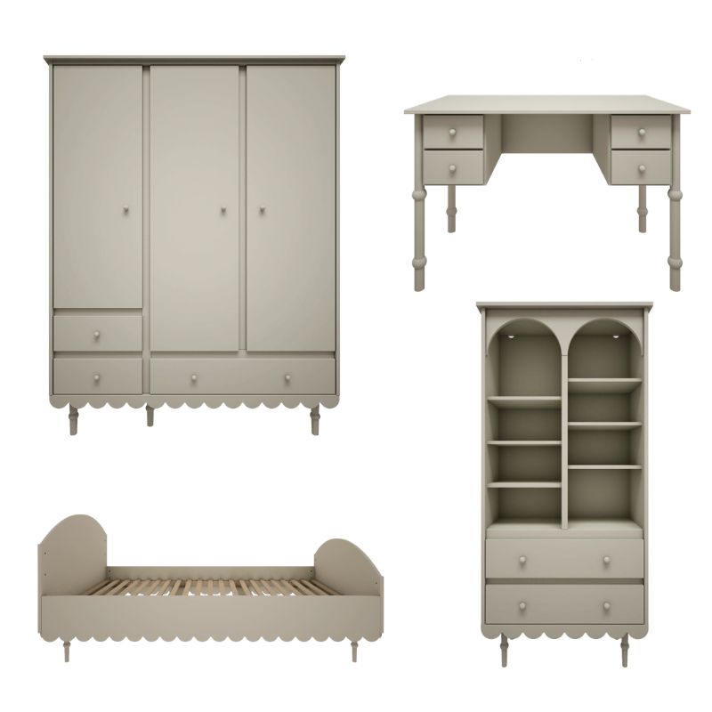 Kolekcja Babushka wyróżnia się subtelnym stylem retro, który doskonale wpisuje się w nowoczesne wnętrza. Oliwkowy kolor mebli dodaje przestrzeni ciepła, harmonii i naturalnego charakteru – to świetna alternatywa dla klasycznej bieli, idealna do aranżacji pokoju dziewczynki w każdym wieku.