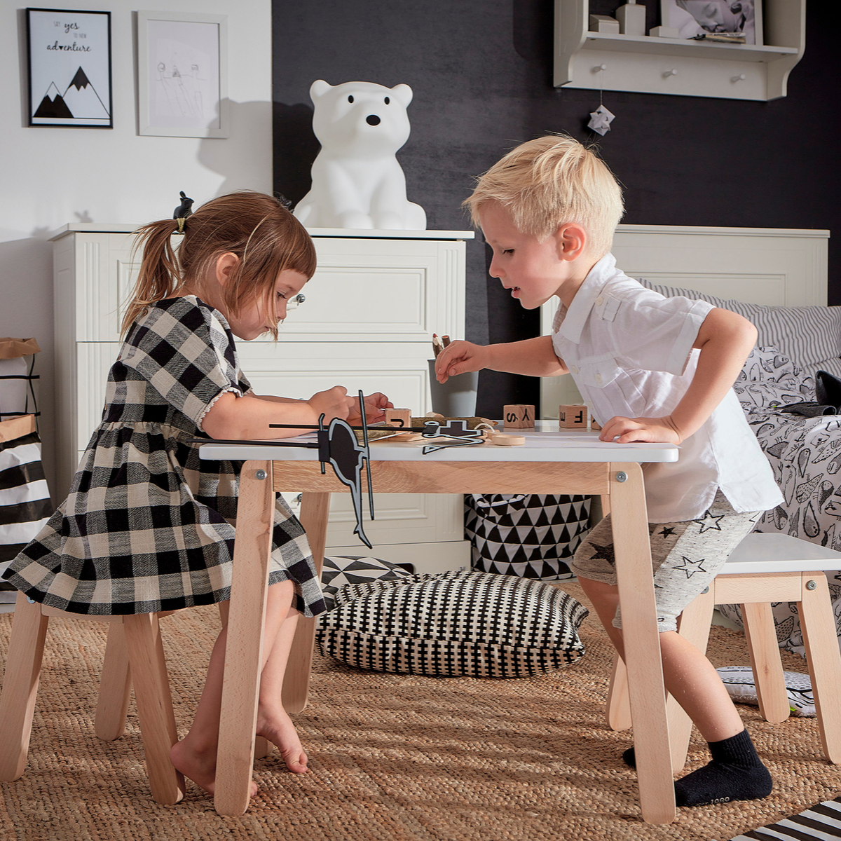 Stoliczki i krzesełka do pokoju dziecka utrzymane są w minimalistycznej, harmonijnej stylistyce, wykonane z bezpiecznych, solidnych i naturalnych materiałów.