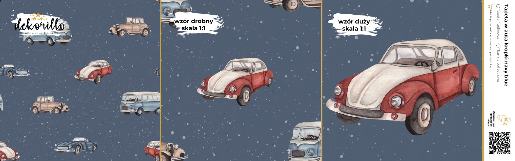 DEKORILLO AUTA KROPKI NAVY BLUE - PRÓBKA TAPETY
