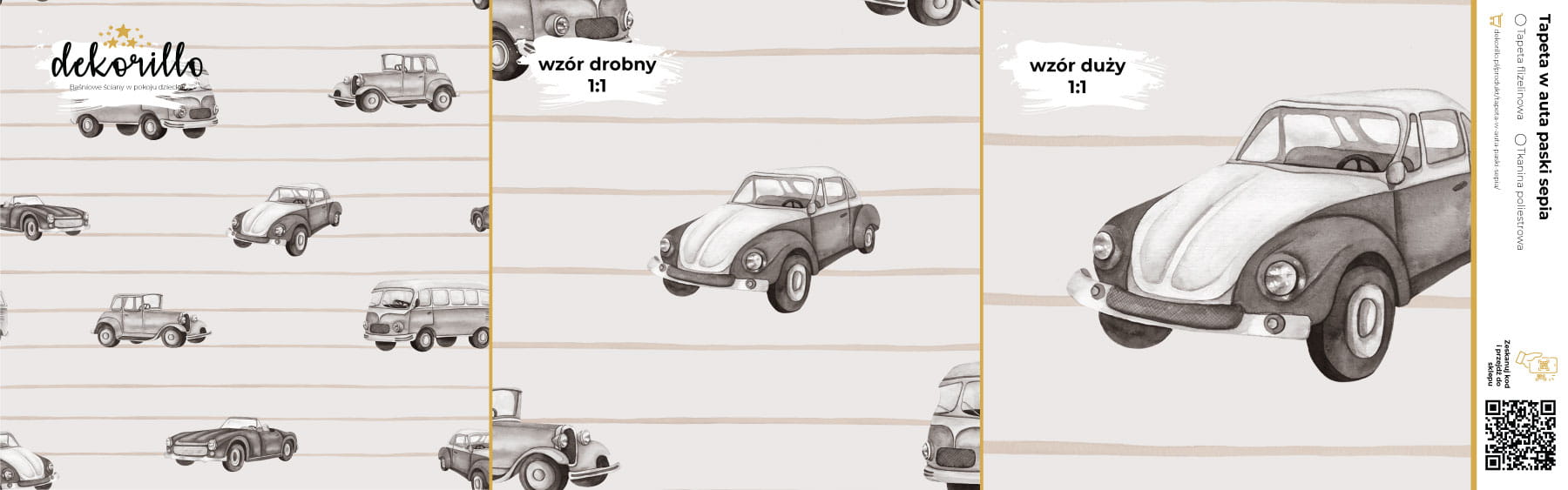 DEKORILLO AUTA PASKI SEPIA - PRÓBKA TAPETY