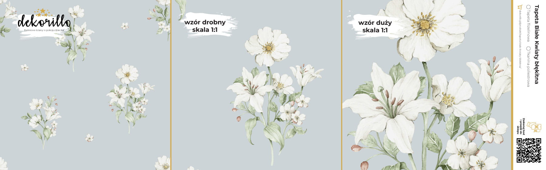 DEKORILLO BIAŁE KWIATY BŁĘKITNA - PRÓBKA TAPETY