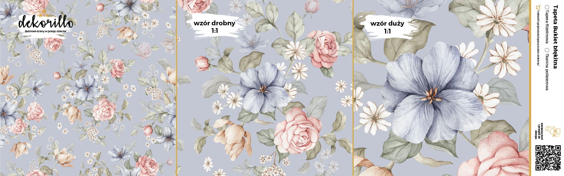 Zamawiając próbki tapet Dekorillo otrzymujesz komplet trzech próbek: