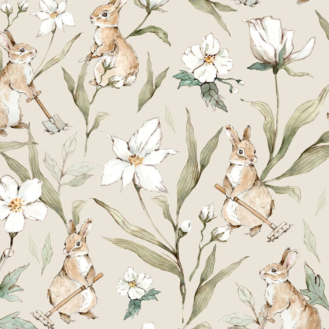 DEKORILLO KRÓLICZKI OGRODNICZKI BEŻOWY - PRÓBKA TAPETY