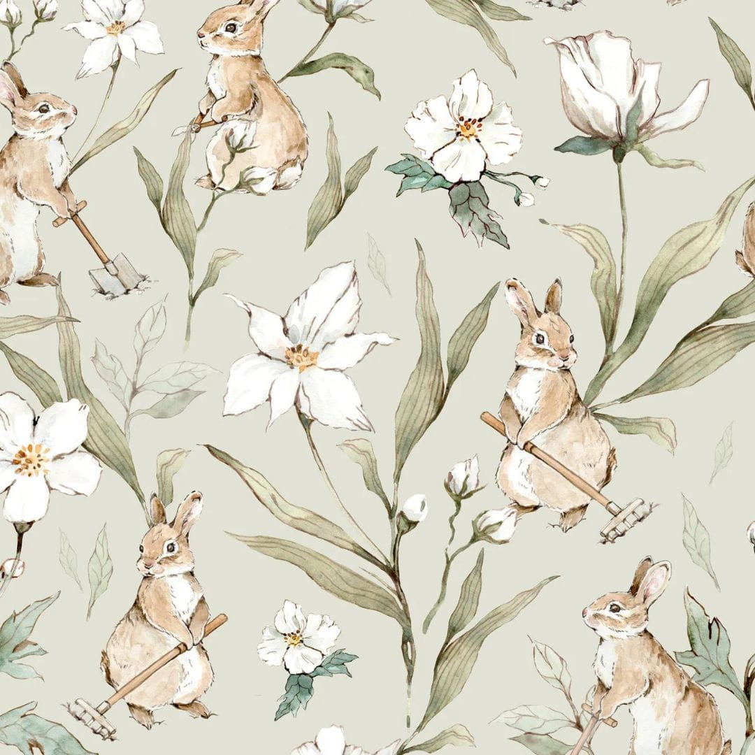 DEKORILLO KRÓLICZKI OGRODNICZKI ZIELONY - PRÓBKA TAPETY