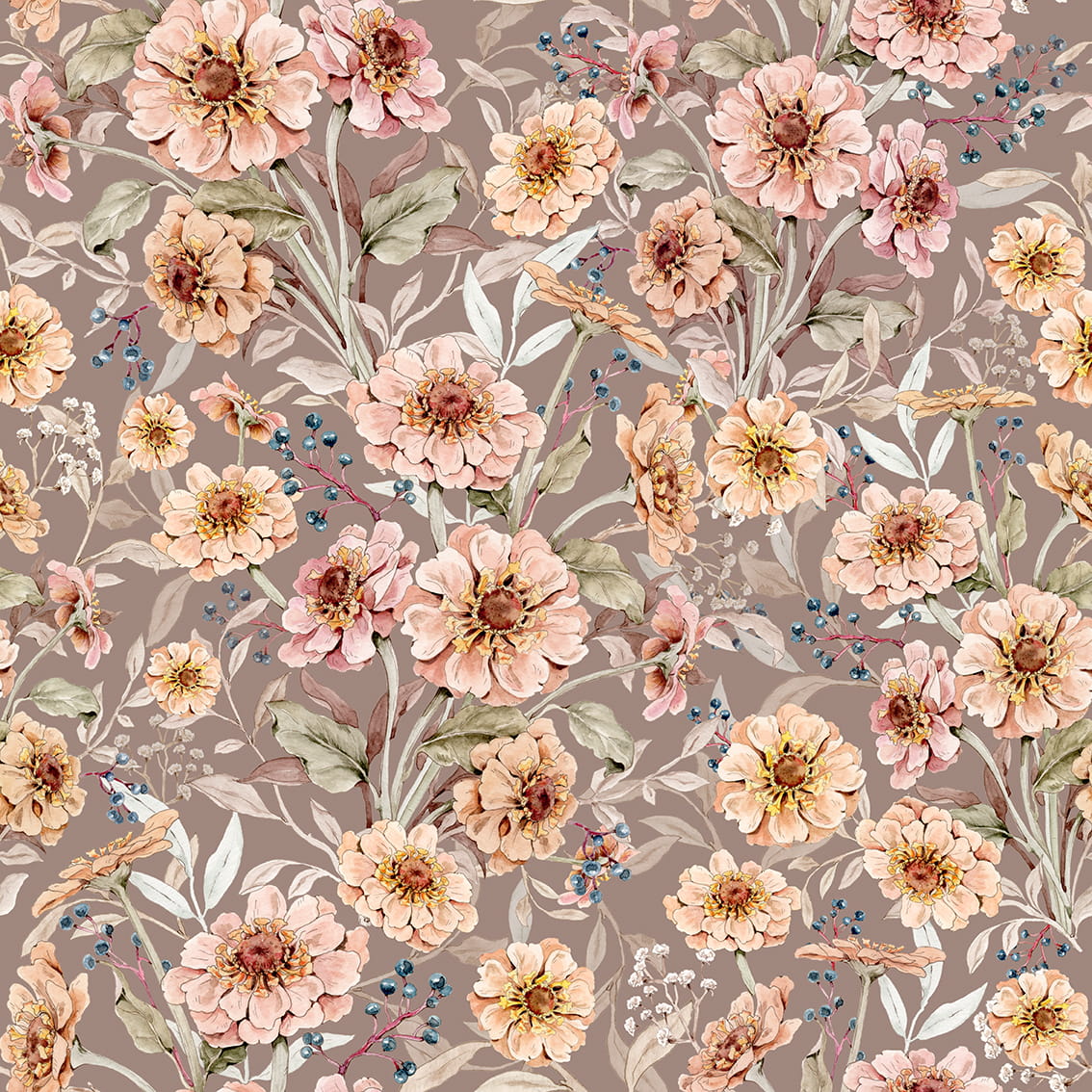 DEKORILLO KWIATY JESIENNY OGRÓD BRĄZ - PRÓBKA TAPETY