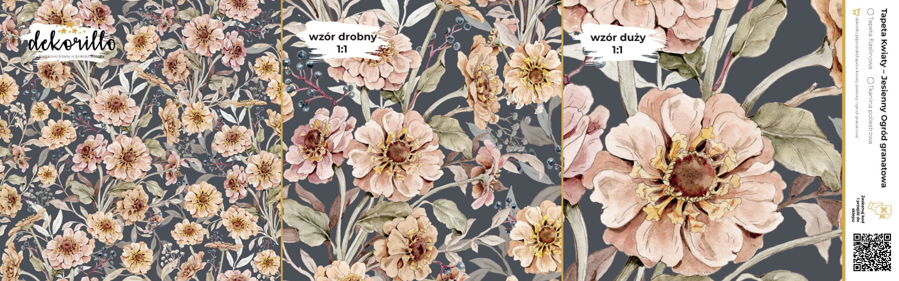 DEKORILLO KWIATY JESIENNY OGRÓD GRANAT - PRÓBKA TAPETY