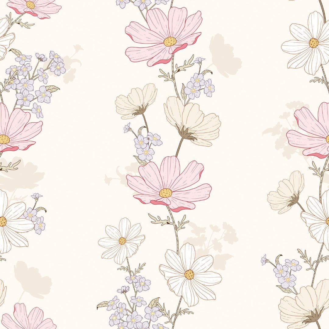 DEKORILLO KWIATY KOSMOSY ECRU - PRÓBKA TAPETY