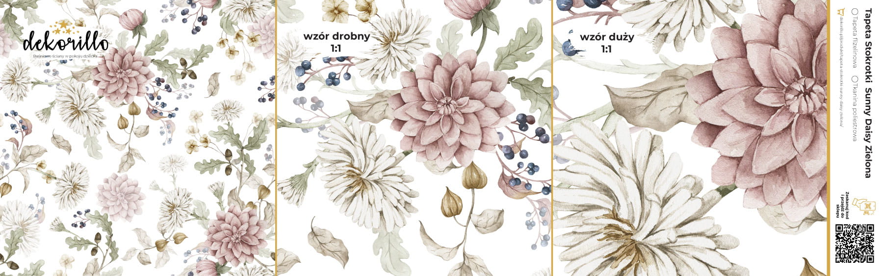 Zamawiając próbki tapet Dekorillo otrzymujesz komplet trzech próbek: