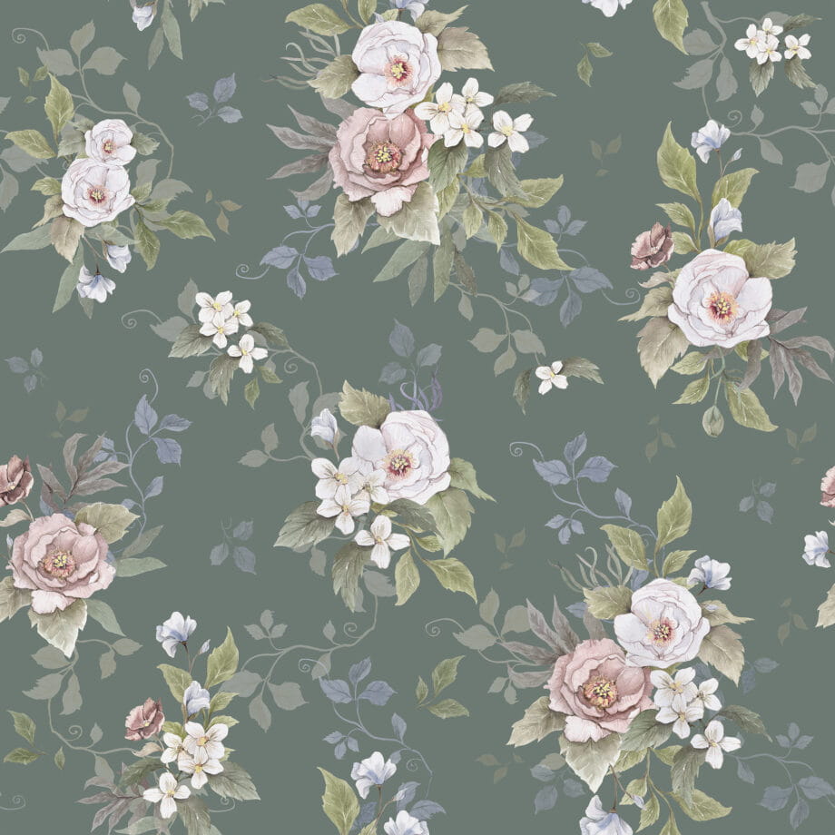 DEKORILLO ROMANTYCZNE PEONIE ZIELONA - PRÓBKA TAPETY