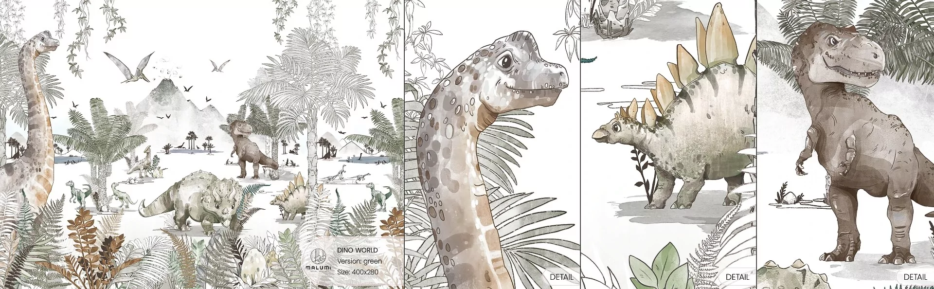 MALUMI DINO GREEN - PRÓBKA TAPETY