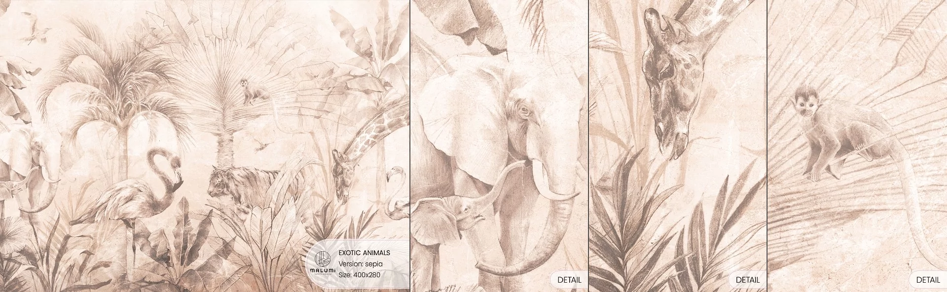MALUMI EXOTIC ANIMALS SEPIA - PRÓBKA TAPETY