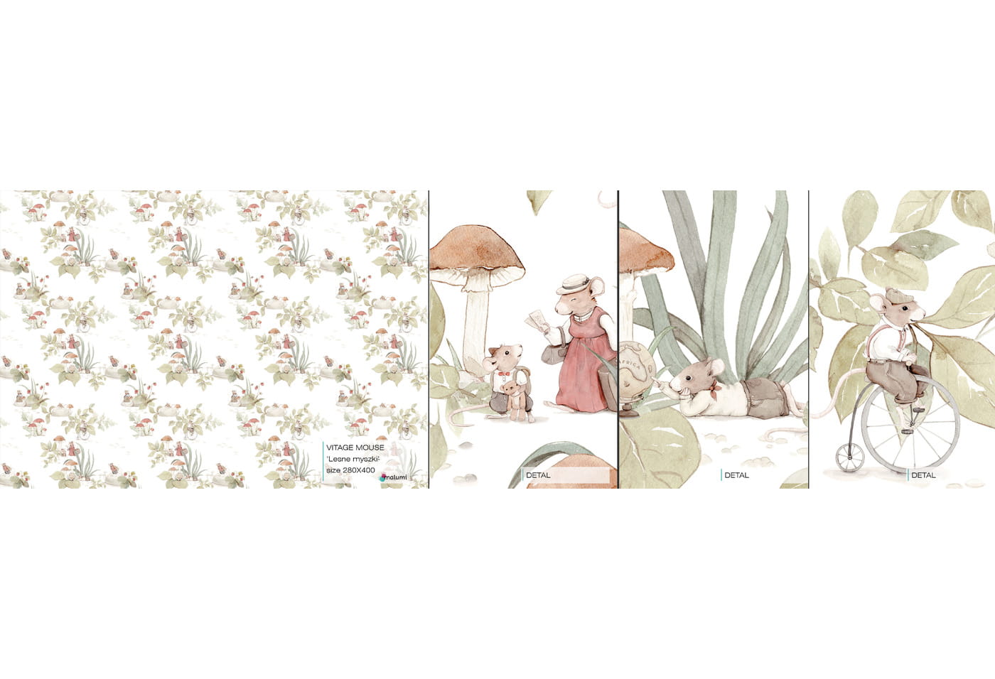 MALUMI LEŚNE MYSZKI - PRÓBKA TAPETY