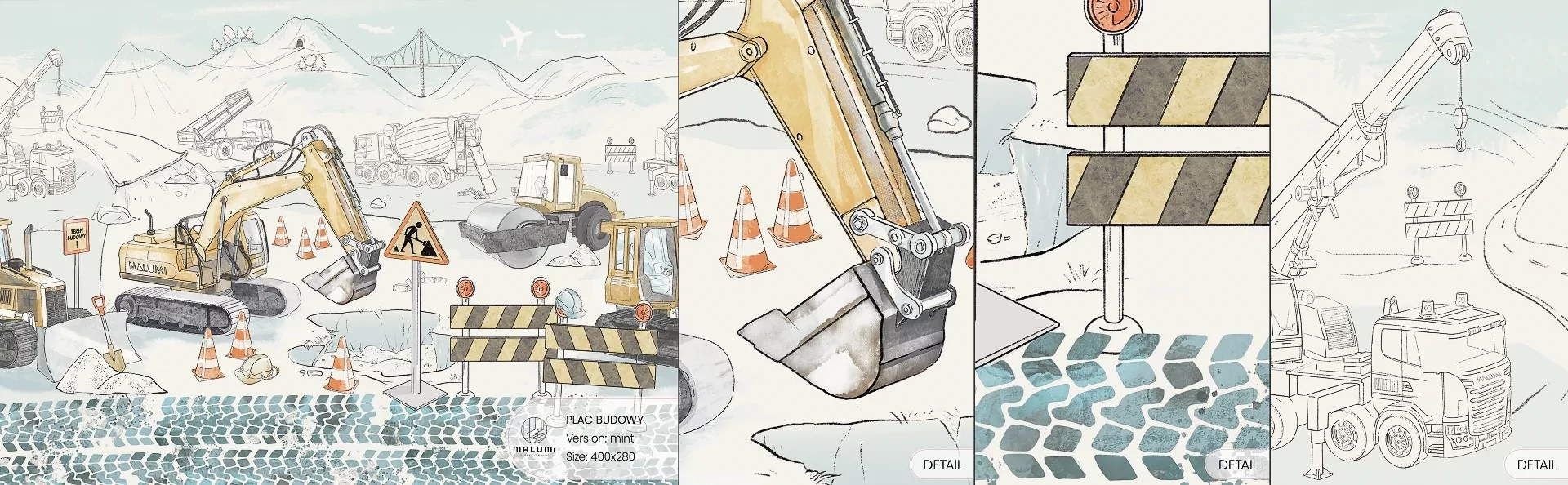 MALUMI PLAC BUDOWY MURAL MINT - PRÓBKA TAPETY