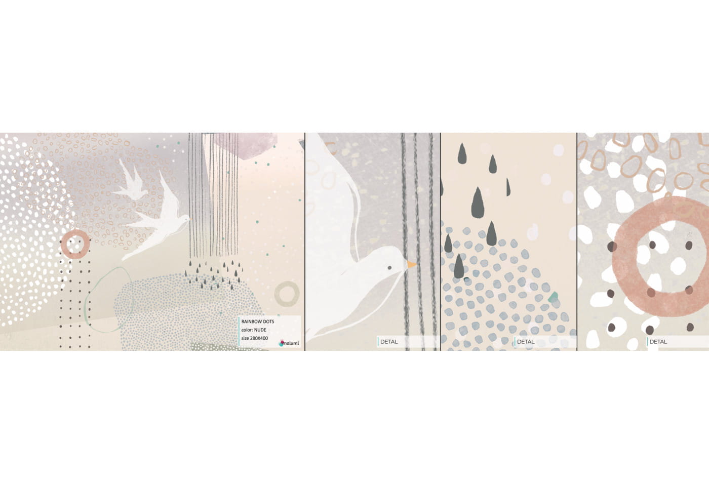 MALUMI RAINBOW DOTS BIRDS - PRÓBKA TAPETY