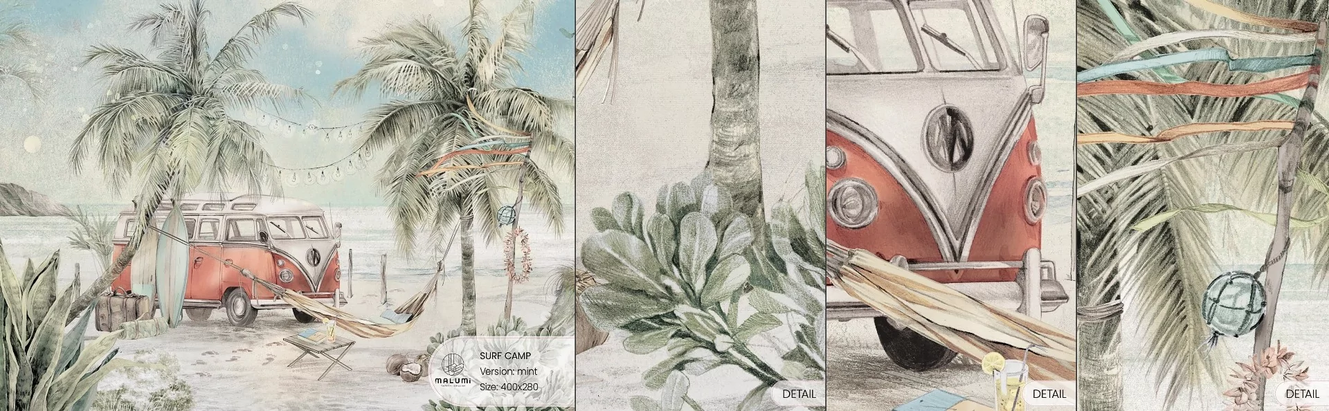 MALUMI SURF CAMP MINT - PRÓBKA TAPETY