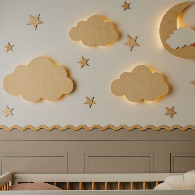 Drewniane lampki nocne chmurki – magia światła w pokoju dziecka